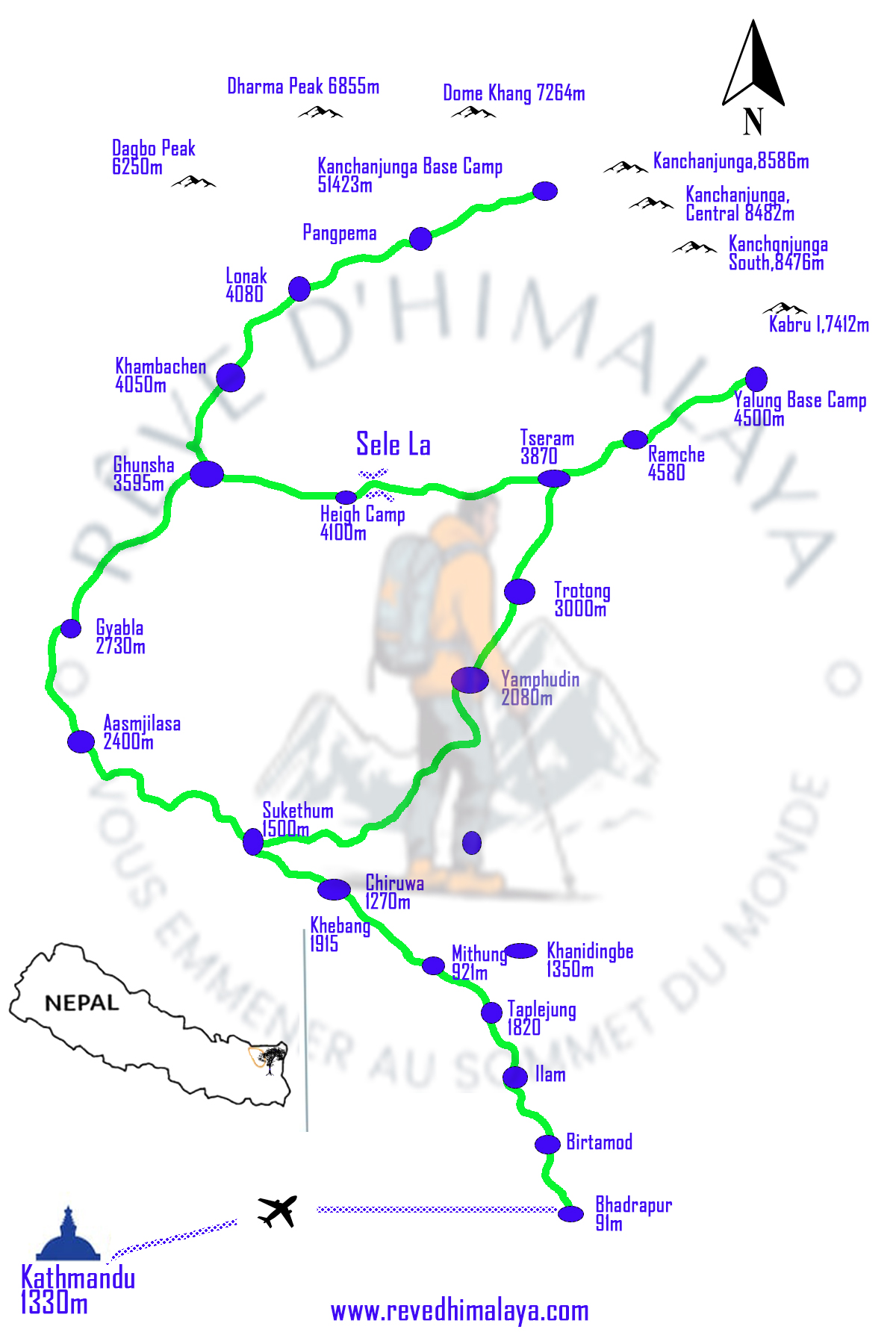 Itinéraire du trekking Camp de Base du Kanchanjunga