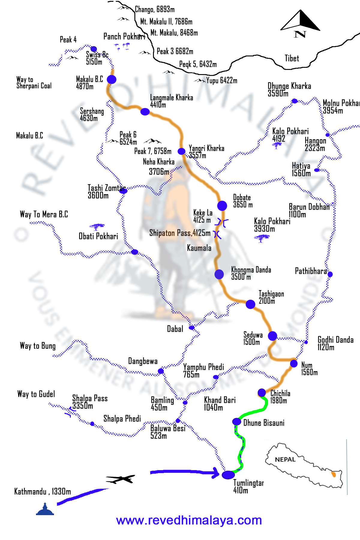 Itinéraire du trekking Camp de base de Makalu